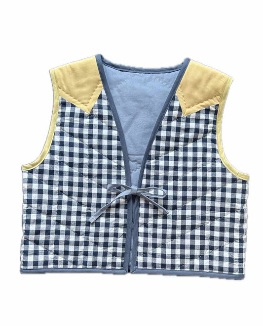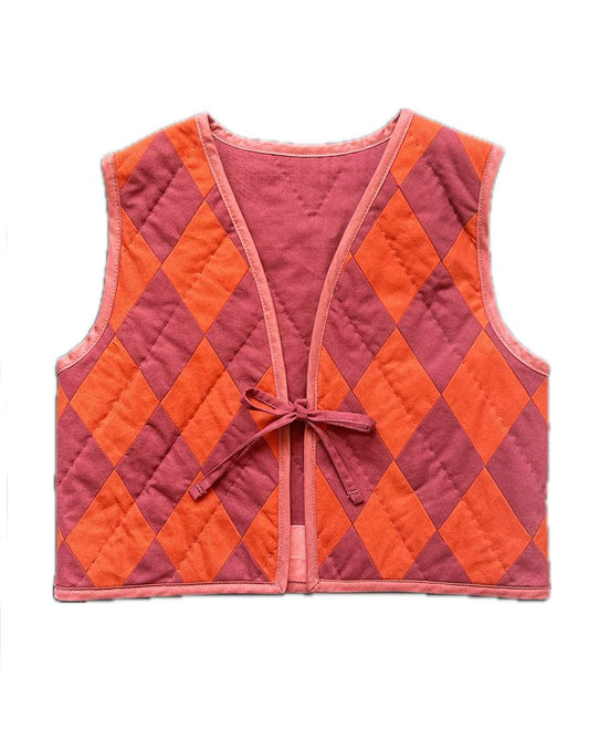 AusverkauftQuilt Weste - Rauten blau/creme/peach