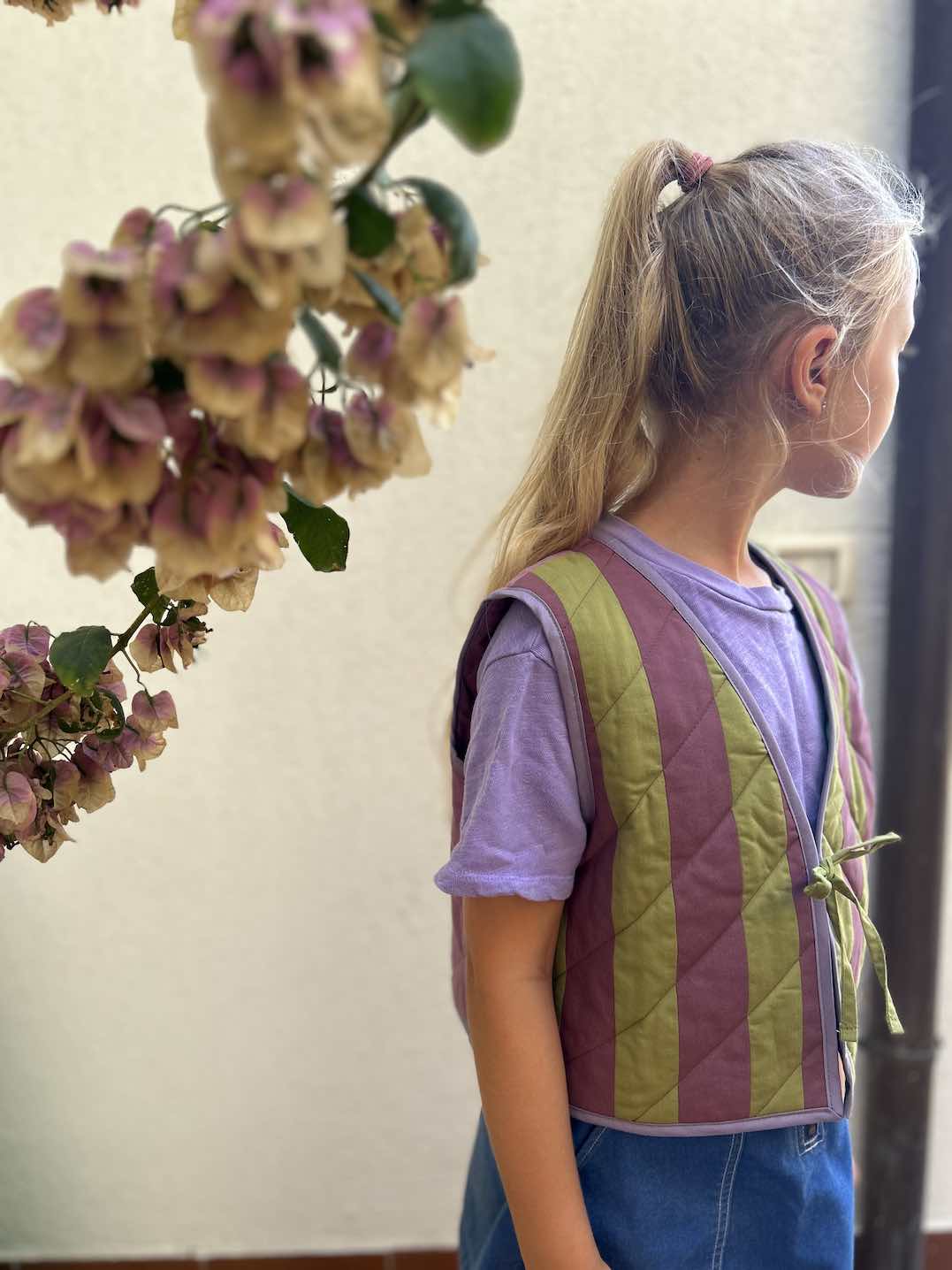Quilt Weste - Streifen oliv/pflaume