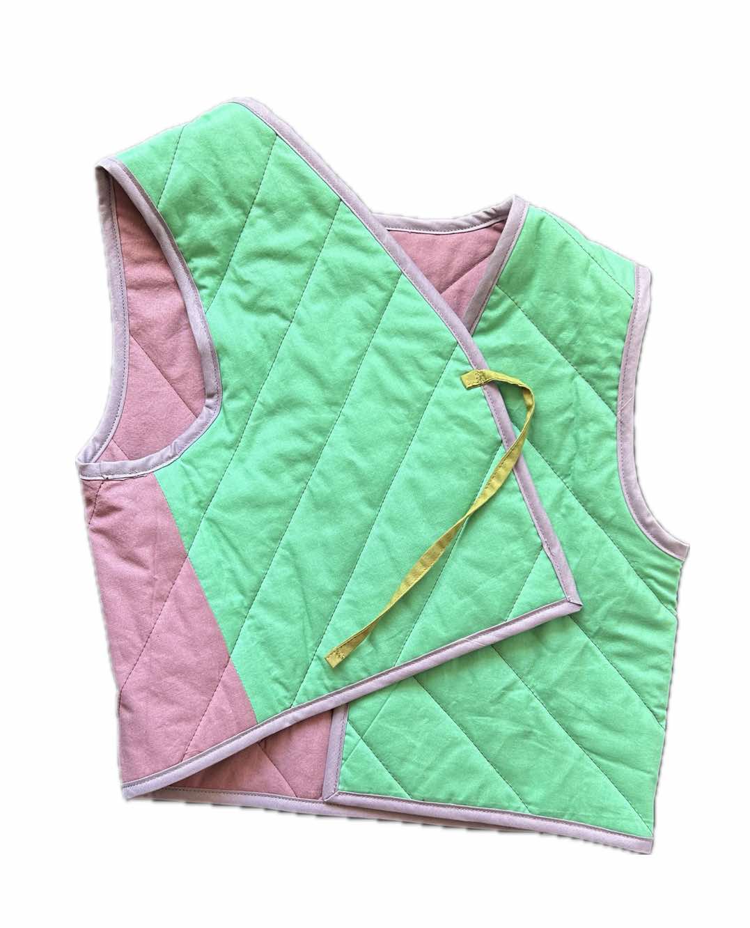Gequiltete und gefütterte Weste zum Wenden in einem Streifenmuster.